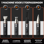 • Complete set: neustrimmer, scheerapparaat, trimmer, bodygroomer en precisietrimmer