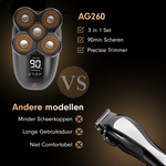Dit AG Scheerapparaat is ontworpen met het oog op ultiem gebruiksgemak, ongeëvenaarde prestaties en een onberispelijke stijl. Met een batterijduur van 90 minuten en een oplaadtijd van slechts 1,5 uur, ben je altijd klaar voor een scheerbeurt van topkwaliteit, waar je ook bent. Ervaar het verschil dat de AG260 kan maken in je dagelijkse scheerroutine en geniet van een ongeëvenaarde gladheid en comfort, elke keer weer.